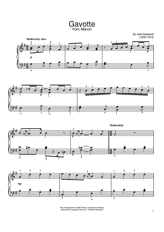 Digital Sheet Music for Gavotte by Jules Massenet scored for Easy Piano; id:402861