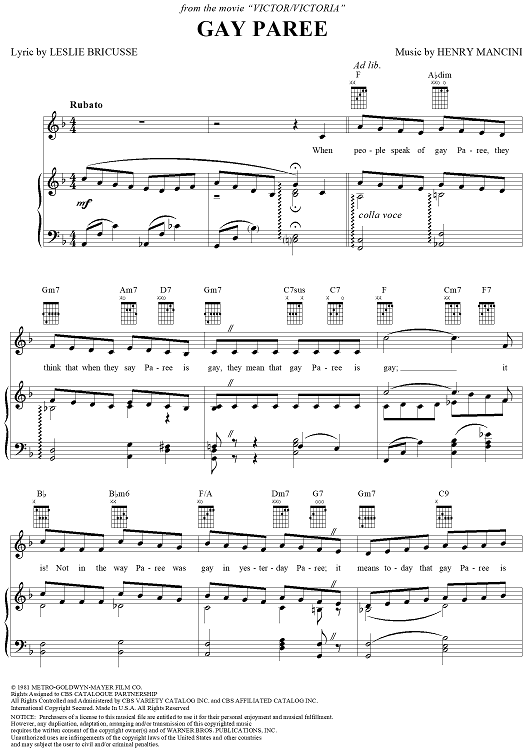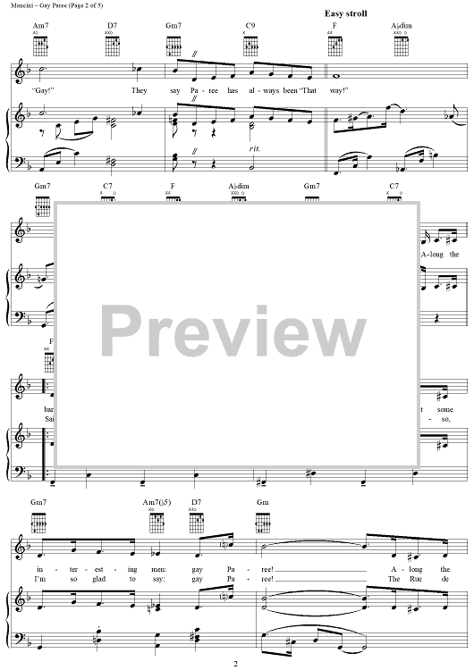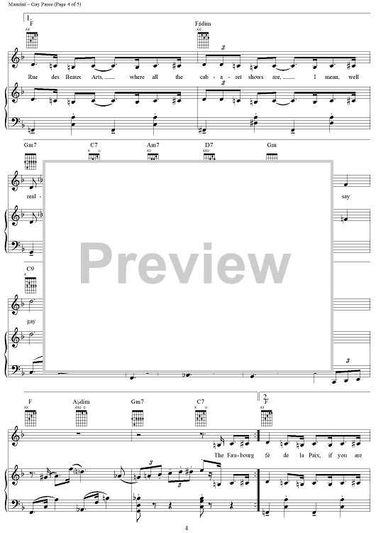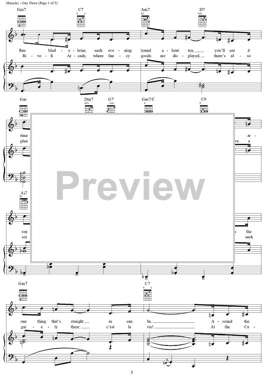 Digital Sheet Music for Gay Paree by Henry Mancini, Leslie Bricusse, Robert Preston scored for Piano/Vocal/Chords; id:251307