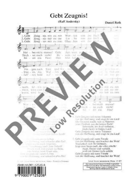 Digital Sheet Music for Gebt Zeugnis! by Daniel Roth scored for Voice And Piano (organ); id:479662