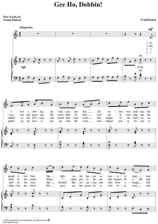 Digital Sheet Music for Gee ho, Dobbin! by Frank Kidson, Traditional scored for Piano/Vocal; id:258919