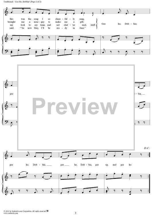 "Gee ho, Dobbin!" Sheet Music by Traditional