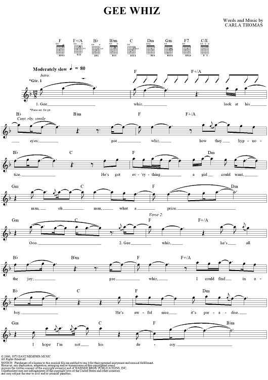 Digital Sheet Music for Gee Whiz by Kenn Chipkin, Carla Thomas scored for Lead Sheet; id:120134