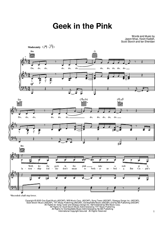 Digital Sheet Music for Geek In The Pink by Scott Storch, Kevin Kadish, Ian Sheridan, Jason Mraz scored for Piano/Vocal/Chords; id:389112
