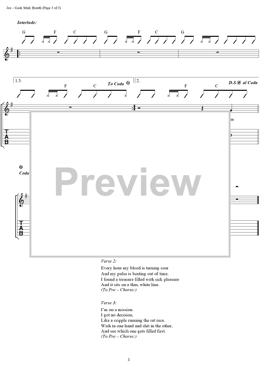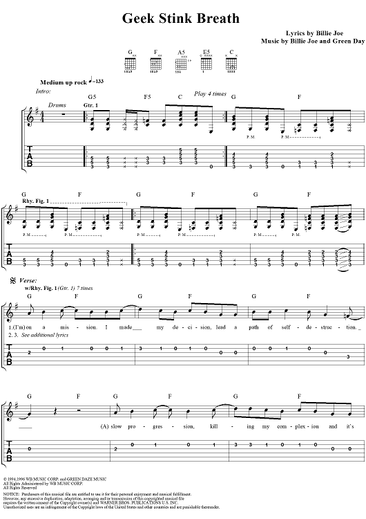 "Geek Stink Breath" Sheet Music by Green Day