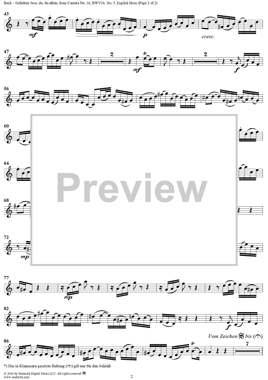 ""Geliebter Jesu, du, du allein", Aria, No. 5 from Cantata No. 16: "Herr Gott, dich loben wir" - English Horn" Sheet Music by Johann Sebastian Bach