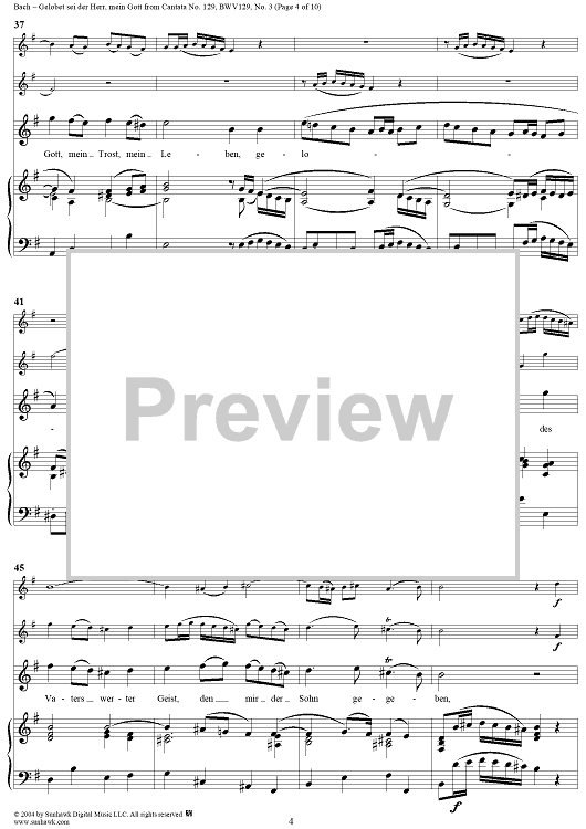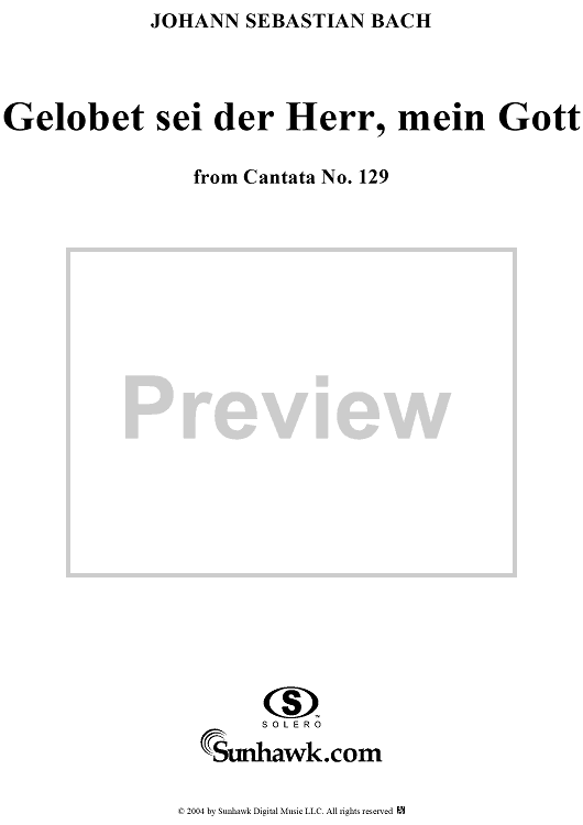 ""Gelobet sei der Herr, mein Gott", Aria, No. 3 from Cantata No. 129: "Gelobet sei der Herr, mein Gott" - Piano Score" Sheet Music by Johann Sebastian Bach