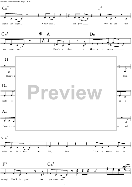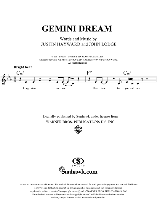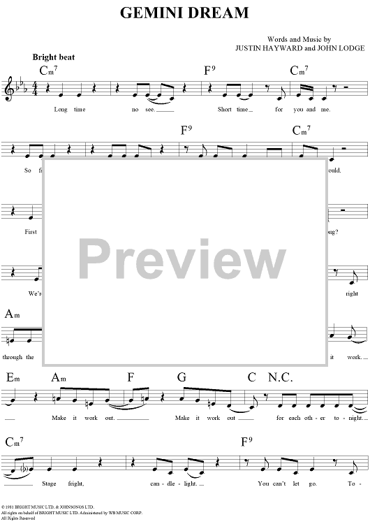 Digital Sheet Music for Gemini Dream by Justin Hayward, John Lodge, Moody Blues scored for Lead Sheet; id:120082