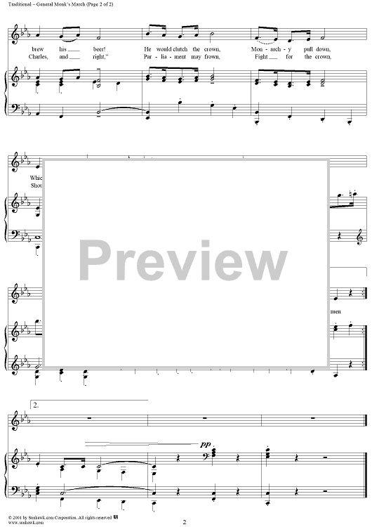 Digital Sheet Music for General Monk's March by Traditional scored for Piano/Vocal; id:258925