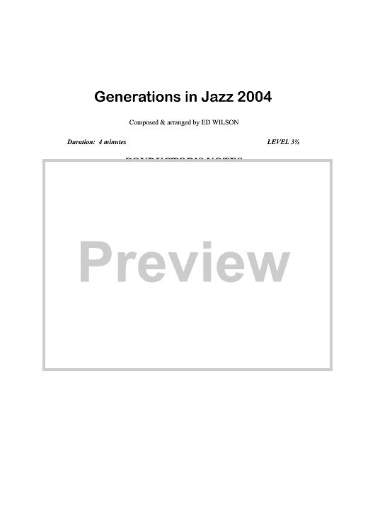 Digital Sheet Music for Generations in Jazz 2004 - Conductor's Notes by , Ed Wilson scored for Jazz Ensemble; id:356647