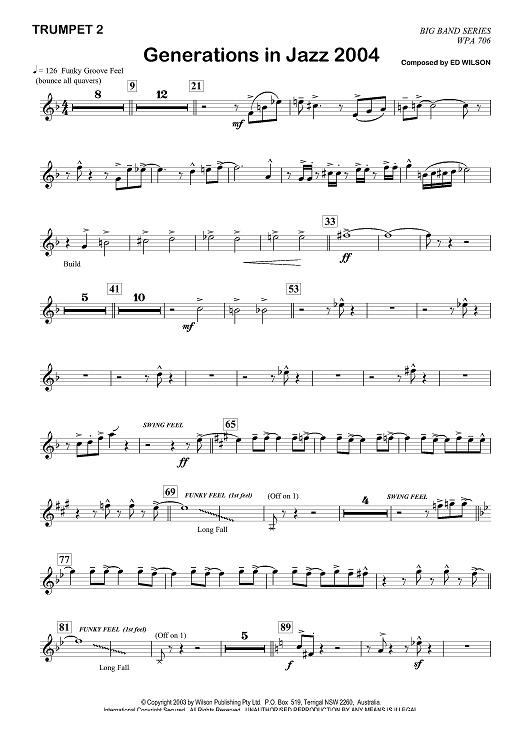 Digital Sheet Music for Generations in Jazz 2004 - Trumpet 2 by Ed Wilson scored for Jazz Ensemble; id:356655