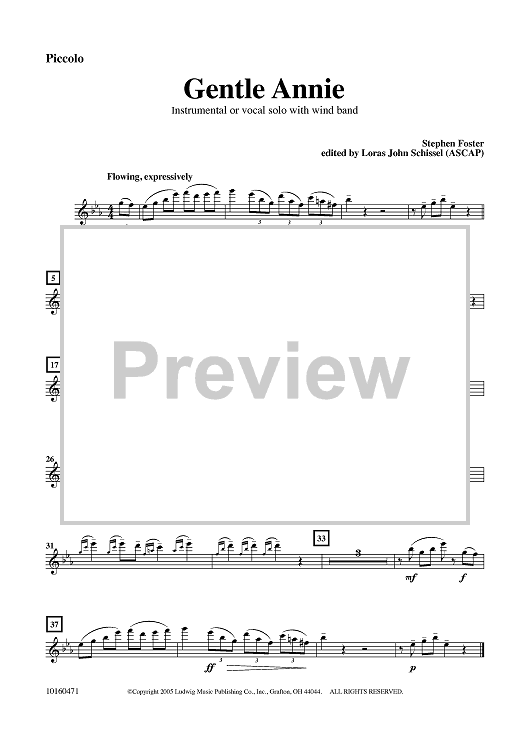 Digital Sheet Music for Gentle Annie - Piccolo by , Stephen Foster, Loras John Schissel scored for Instrumental or vocal solo with wind band; id:459055