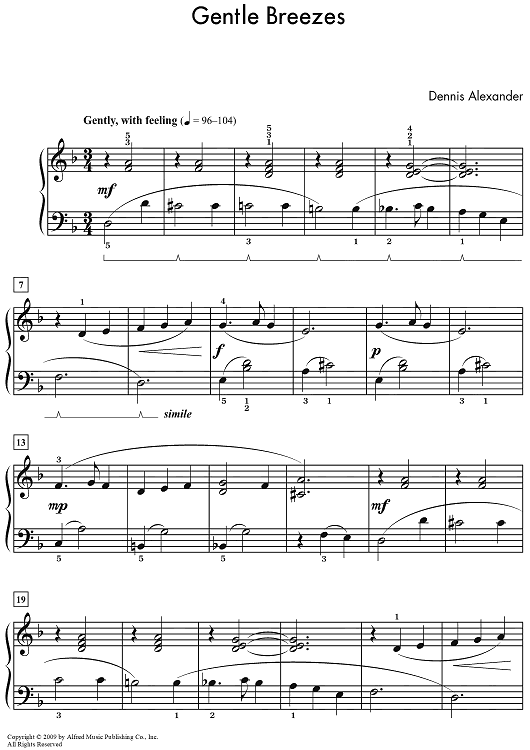 Digital Sheet Music for Gentle Breezes by Dennis Alexander scored for Piano Solo; id:469181