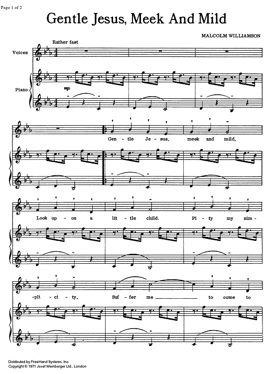 "Gentle Jesus, Meek And Mild" Sheet Music by Malcolm Williamson