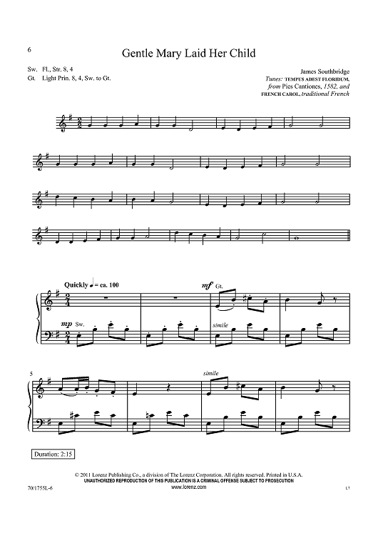 Digital Sheet Music for Gentle Mary Laid Her Child by Various, James Southbridge scored for Organ Solo; id:434668