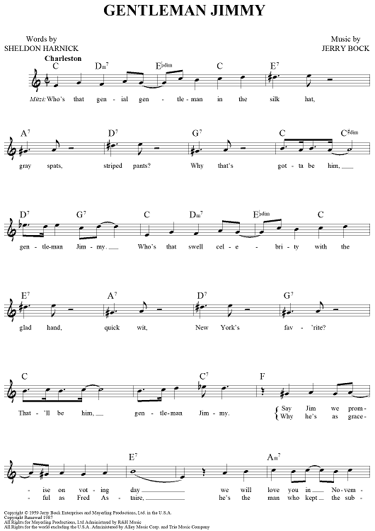 Digital Sheet Music for Gentleman Jimmy by Jerry Bock, Sheldon Harnick scored for Lead Sheet; id:444270
