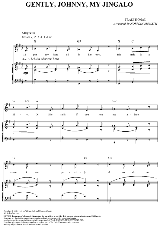 Digital Sheet Music for Gently, Johnny, My Jingalo by Norman Monath, Traditional scored for Piano/Vocal/Chords; id:260964