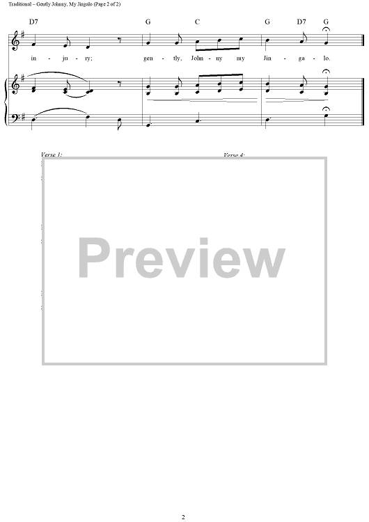 "Gently, Johnny, My Jingalo" Sheet Music by Traditional