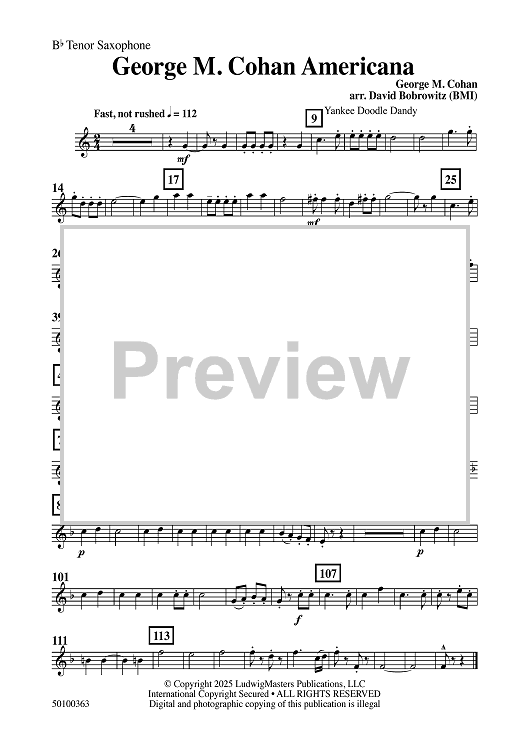 Digital Sheet Music for George M. Cohan Americana - Bb Tenor Saxophone by George M Cohan, David Bobrowitz scored for Concert Band; id:509479