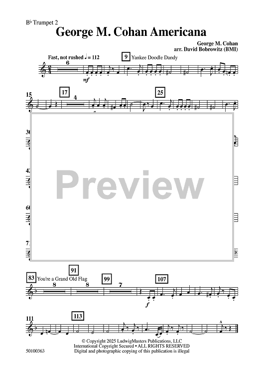 Digital Sheet Music for George M. Cohan Americana - Bb Trumpet 2 by George M Cohan, David Bobrowitz scored for Concert Band; id:509482