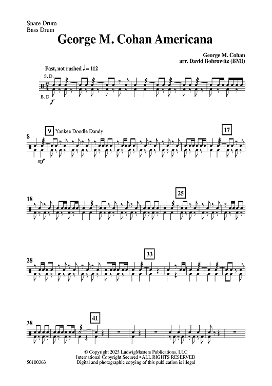 Digital Sheet Music for George M. Cohan Americana - Snare Drum / Bass Drum by George M Cohan, David Bobrowitz scored for Concert Band; id:509490