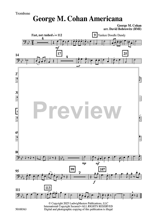 Digital Sheet Music for George M. Cohan Americana - Trombone by George M Cohan, David Bobrowitz scored for Concert Band; id:509484