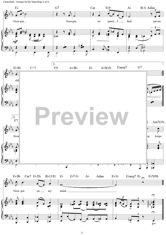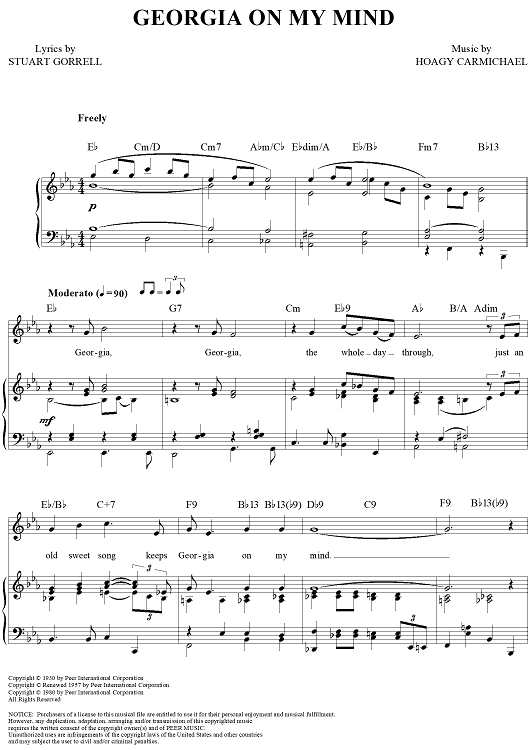Digital Sheet Music for Georgia on My Mind by Hoagy Carmichael, Stuart Gorrell, Willie Nelson scored for Piano/Vocal/Chords; id:309453