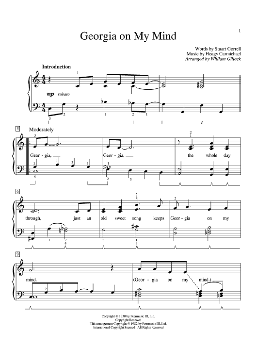 Digital Sheet Music for Georgia On My Mind by Hoagy Carmichael, Stuart Gorrell, Willie Nelson scored for Piano; id:394397