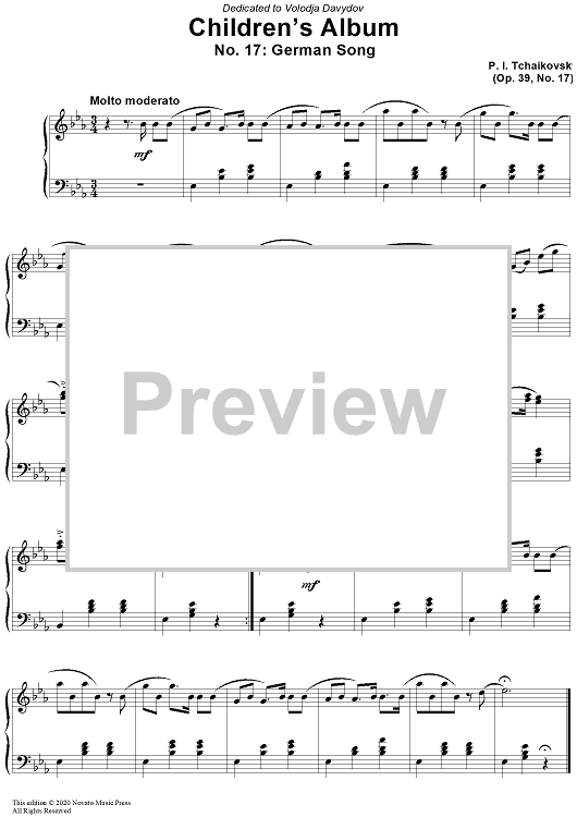 "German Song - from Children's Album" Sheet Music by Peter Ilyich Tchaikovsky