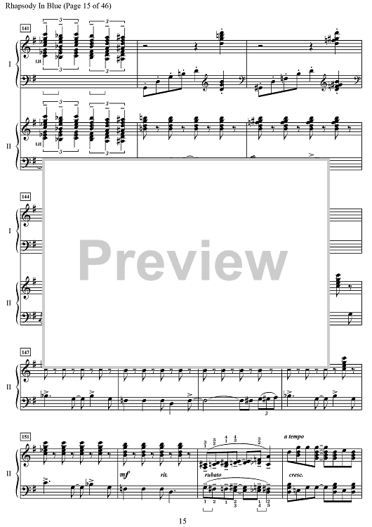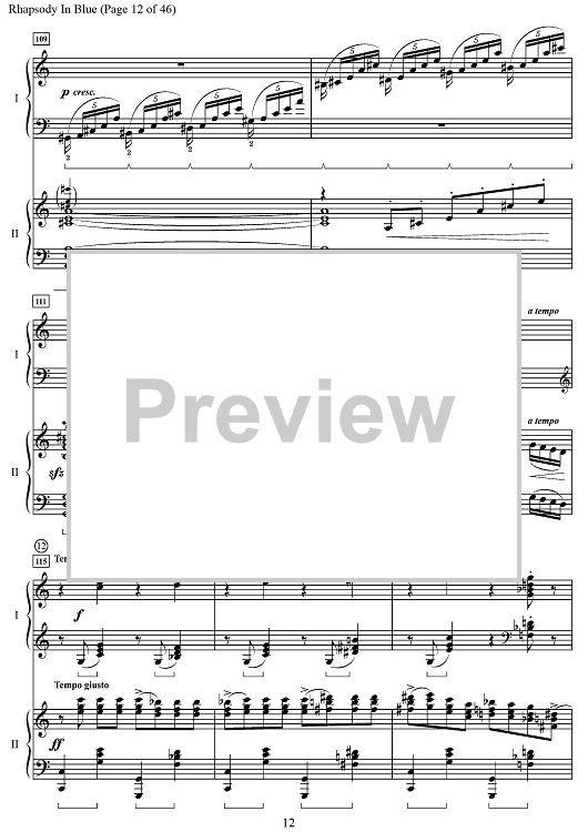 "Gershwin: Rhapsody in Blue For Piano Solo and Orchestra (Arranged for Second Piano)" Sheet Music by George Gershwin