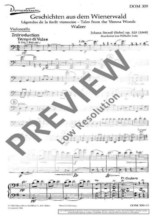 Digital Sheet Music for Geschichten aus dem Wienerwald - Cello by Johann Strauß (Son) scored for Salon Orchestra; id:488028