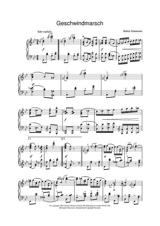 Digital Sheet Music for Geschwindmarsch by Robert Schumann scored for Piano; id:378903