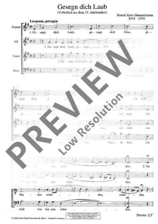 "Gesegn dich Laub - Choral Score" Sheet Music by Bernd Alois Zimmermann