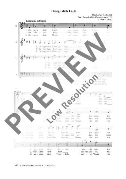 Digital Sheet Music for Gesegn dich Laub by Bernd Alois Zimmermann scored for Mixed Choir (satb); id:493927