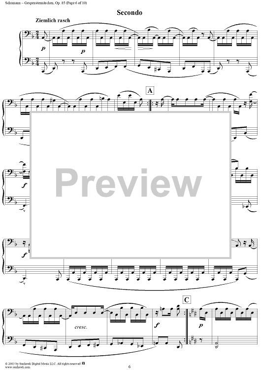 Digital Sheet Music for Gespenstermärchen, No. 11 from "12 Klavierstücke für kleine und grosse Kinder" (Op. 85) by Robert Schumann scored for 1 Piano, 4 Hands; id:294467