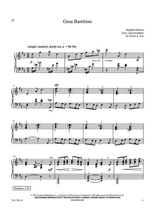Digital Sheet Music for Gesu Bambino by Pietro A. Yon, Stephen Nielson scored for Piano Solo; id:437697