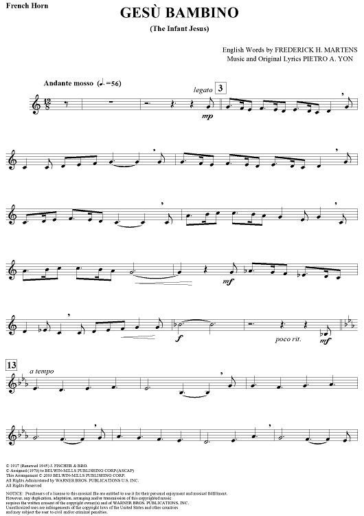 Digital Sheet Music for Gesù Bambino (The Infant Jesus) - Horn in F by Pietro A. Yon, Frederick H. Martens scored for Horn in F/Piano; id:314528