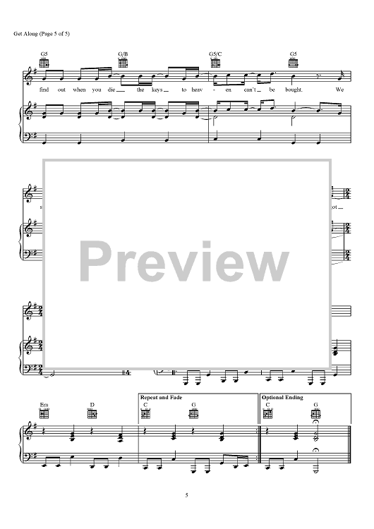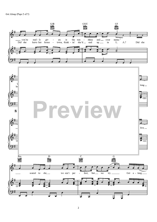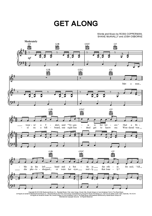 Digital Sheet Music for Get Along by Kenny Chesney, Shane McAnally, Josh Osborne, Ross Copperman scored for Piano/Vocal/Chords; id:466433