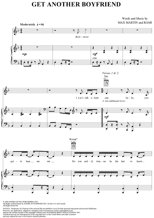 Digital Sheet Music for Get Another Boyfriend by Max Martin, Backstreet Boys, Rami Yacoub scored for Piano/Vocal/Chords; id:284326