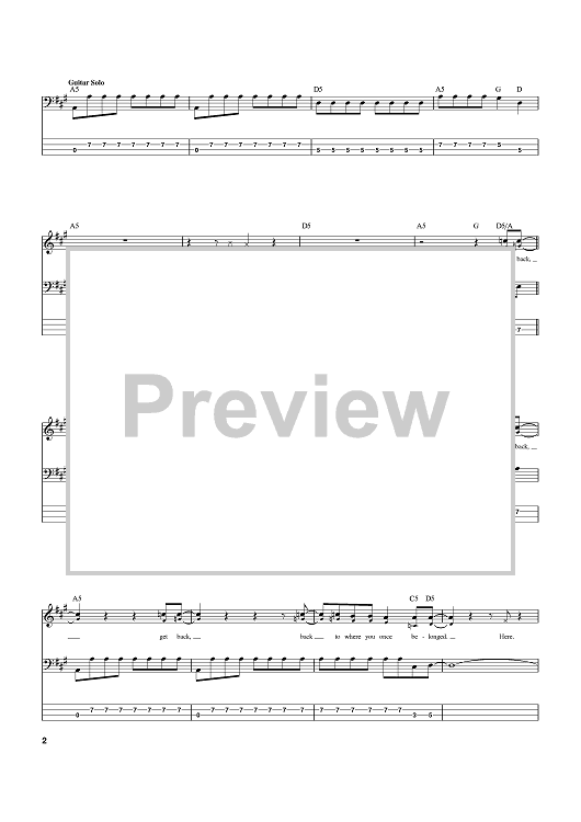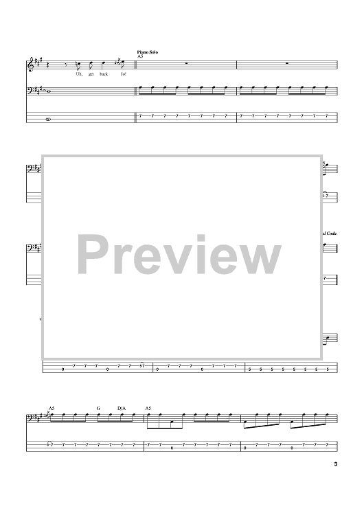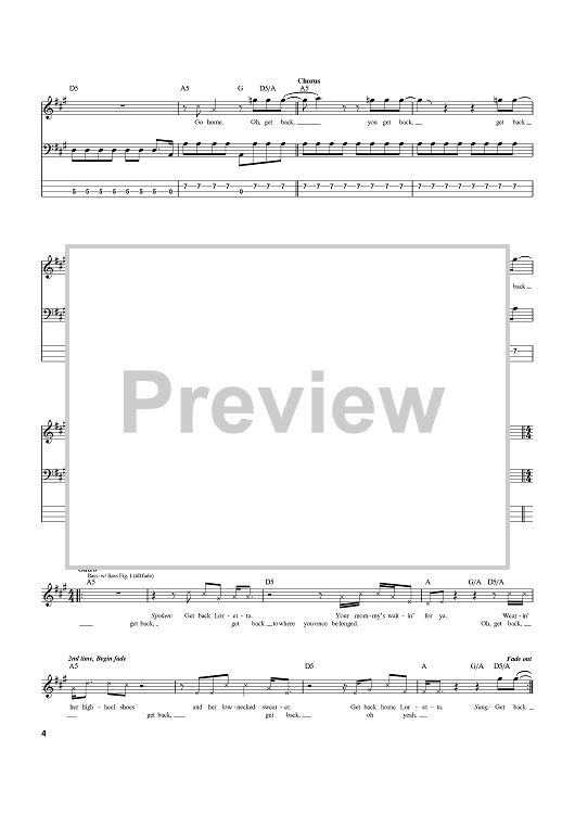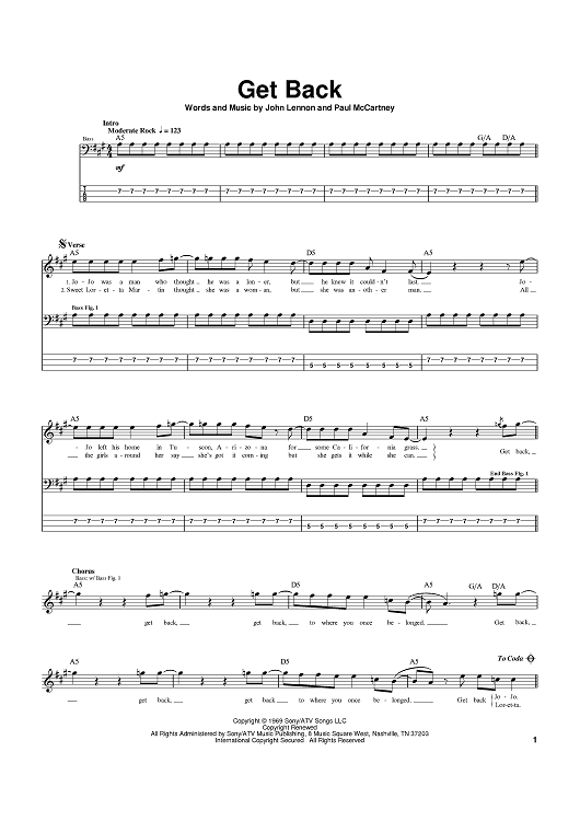 Digital Sheet Music for Get Back by Paul McCartney, The Beatles, John Lennon scored for Bass Tab; id:369509