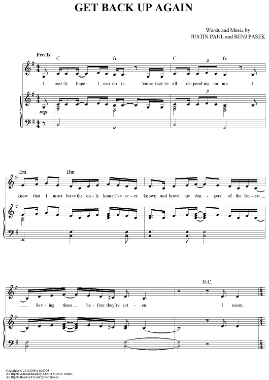 Digital Sheet Music for Get Back Up Again by Benj Pasek, Justin Paul, Anna Kendrick scored for Piano/Vocal/Chords; id:464104