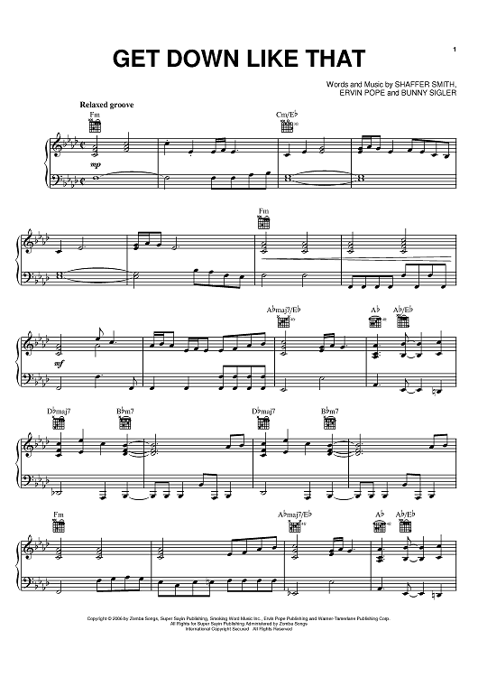 Digital Sheet Music for Get Down Like That by Bunny Sigler, Ne-Yo, Ervin Pope scored for Piano/Vocal/Chords; id:393552