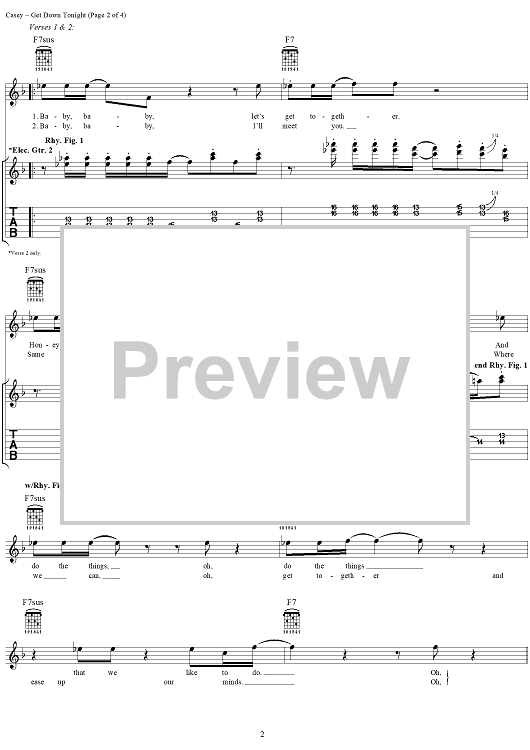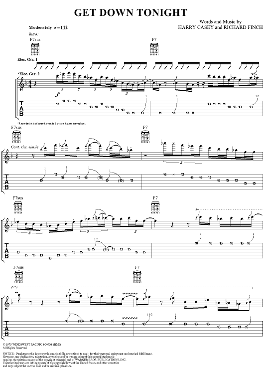 Digital Sheet Music for Get Down Tonight by KC, Richard Finch, KC and the Sunshine Band scored for Easy Guitar Tab/Vocal; id:233240