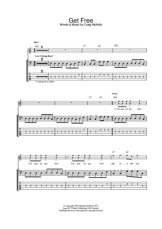 Digital Sheet Music for Get Free by The Vines scored for Bass Tab; id:377657