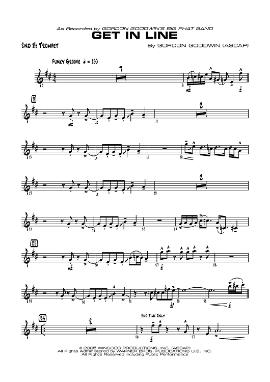 Digital Sheet Music for Get In Line - B-flat Trumpet 2 by Gordon Goodwin, Gordon Goodwin's Big Phat Band scored for Jazz Ensemble; id:356168