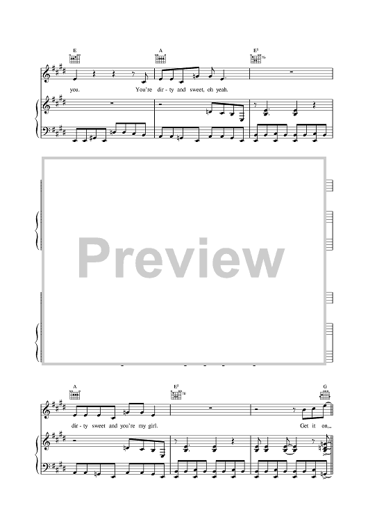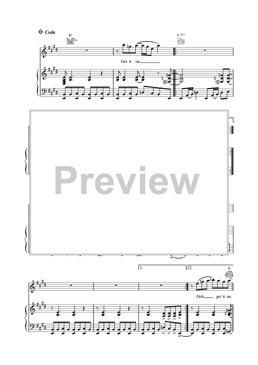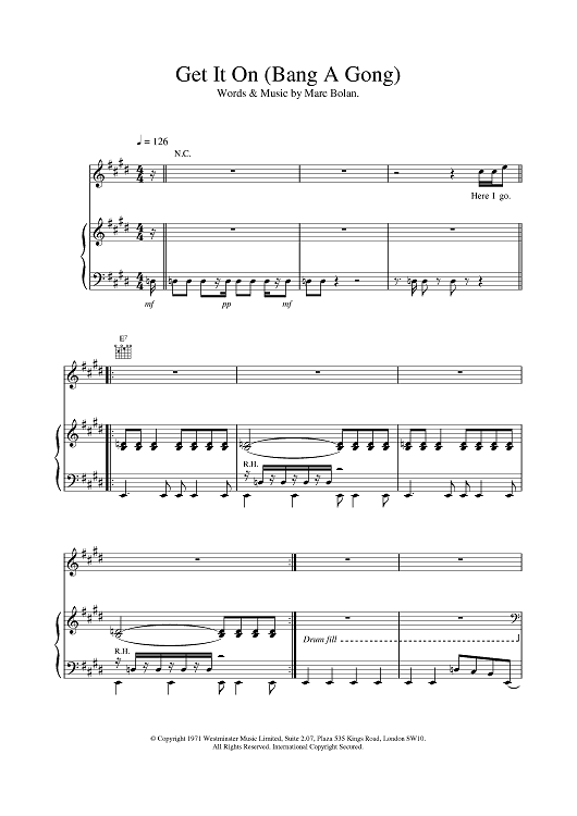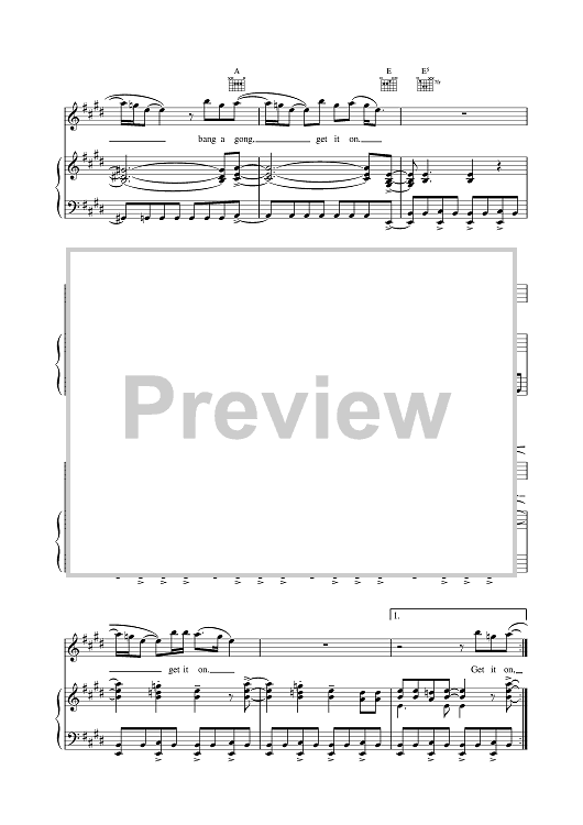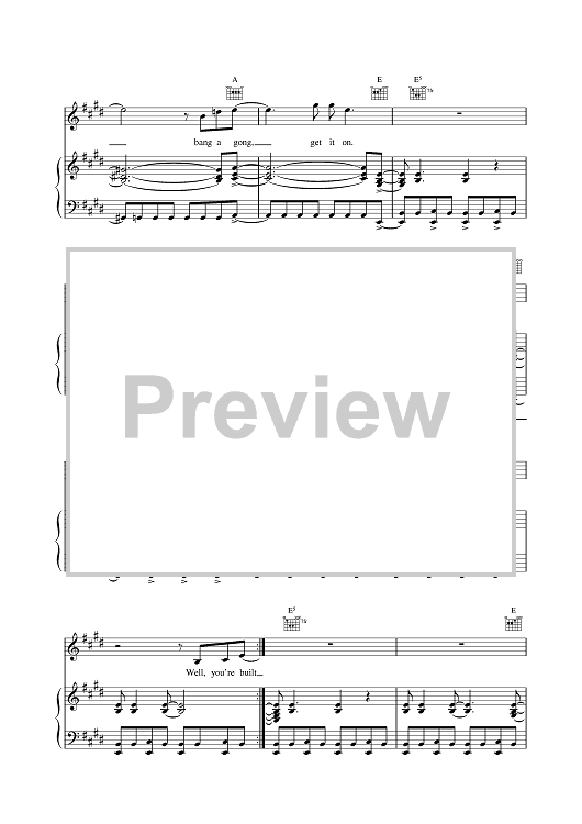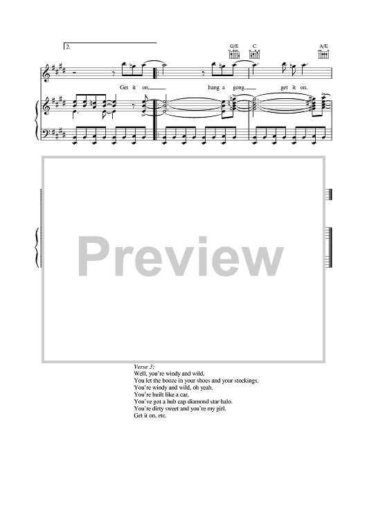 Digital Sheet Music for Get It On (Bang A Gong) by T.Rex scored for Piano/Vocal/Chords; id:378841