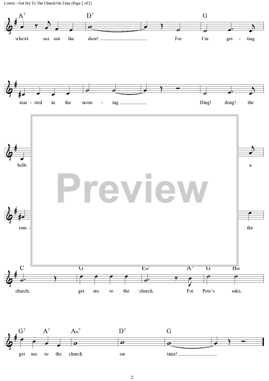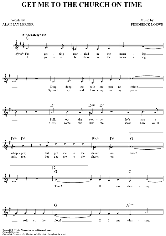 Digital Sheet Music for Get Me to the Church on Time by Frederick Loewe, Alan Jay Lerner scored for Lead Sheet; id:447212