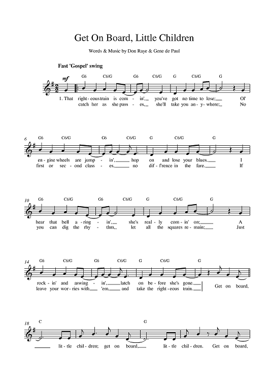 Digital Sheet Music for Get On Board, Little Children (Top Line) by Don Raye, Gene De Paul scored for Lead Sheet; id:380707