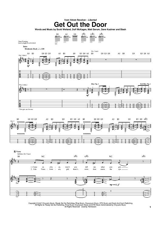 Digital Sheet Music for Get Out The Door by Scott Weiland, Slash, Dave Kushner, Duff McKagan, Matt Sorum, Velvet Revolver scored for Guitar Tab; id:402886