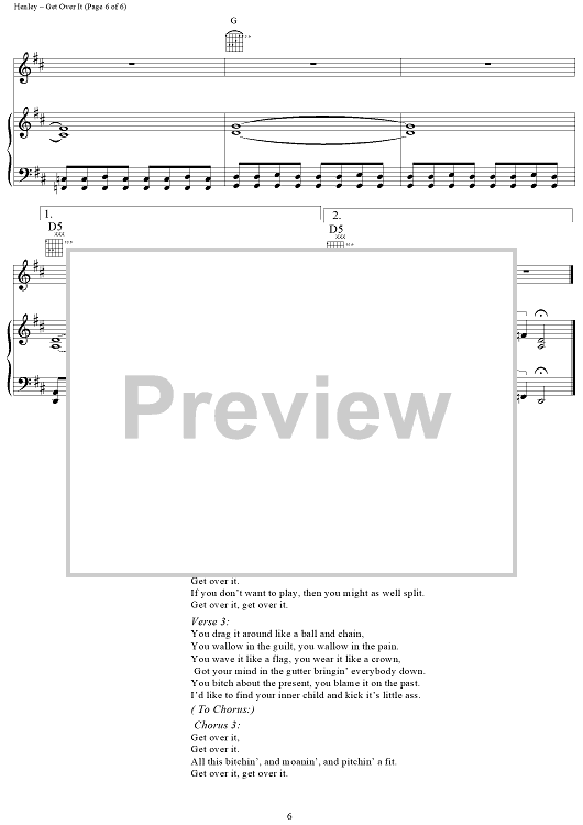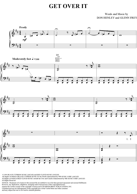 Digital Sheet Music for Get Over It by Don Henley, Glenn Frey, Eagles scored for Piano/Vocal/Chords; id:112640