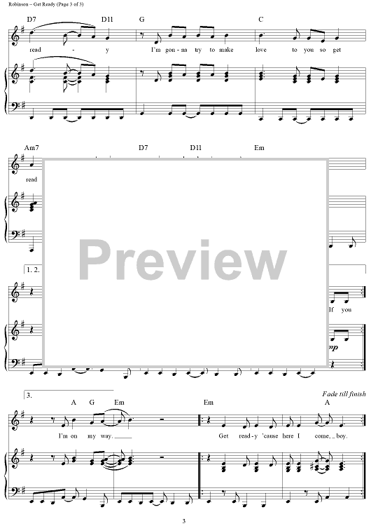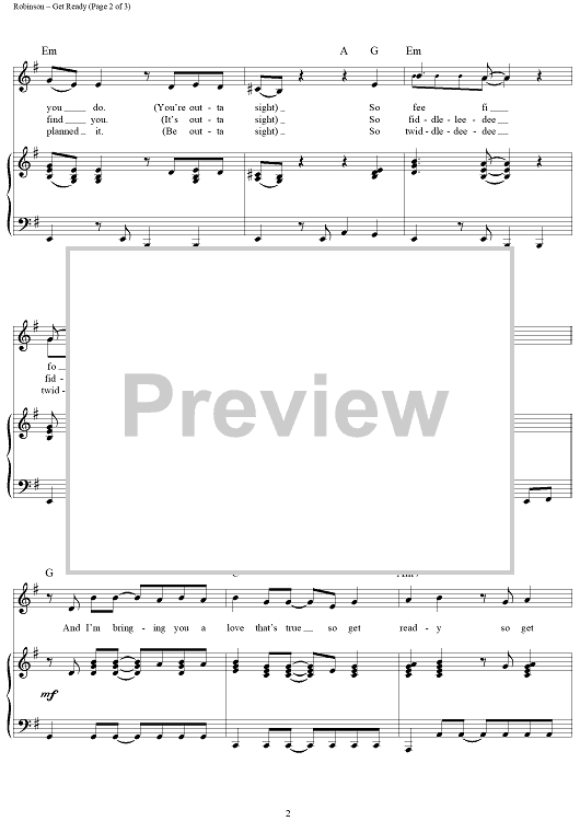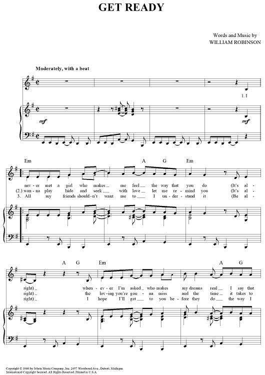Digital Sheet Music for Get Ready by Smokey Robinson, The Miracles, Rare Earth, The Temptations scored for Piano/Vocal/Chords; id:364052
